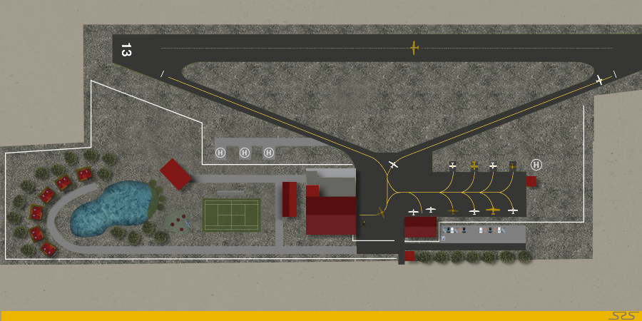 На генеральному плані показано зв’язки клубного приміщення, яке проектується, з усіма будівлями, приміщеннями та зонами, що входять до загального комплексу аеродрому та зон відпочинку.