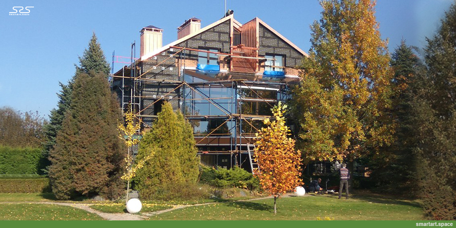 Цікавою особливістю щодо проведення монтажних робіт є те, що господарі мали змогу проживати у будинку під час всього процесу реконструкції.