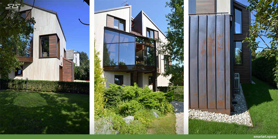 У даній реконструкції використовувалися сучасні технології, оригінальний дизайн та одні з найкращих матеріалів за своїми характеристиками. Утеплення фасадів виконувалося піносклом від бельгійського виробника. Щодо зовнішнього вигляду? Було виконане облицювання великогабаритною плиткою. На заміну старих віконних конструкцій було встановлено енергоефективні склопакети і спеціальні дерев’яні рами з алюмінієвою накладкою. Також була зроблена сучасна фальцева покрівля.