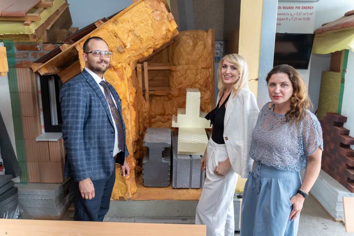 На фото: Володимир Скочко проводить екскурсію по енергоцентру NZEB HUB КНУБА для заступника директора компанії ТОВ «Будівельне обʼєднання «ГЕРЦ» Ольги Гелюх та директора Центру екологічної сертифікації та маркування Світлани Перминової